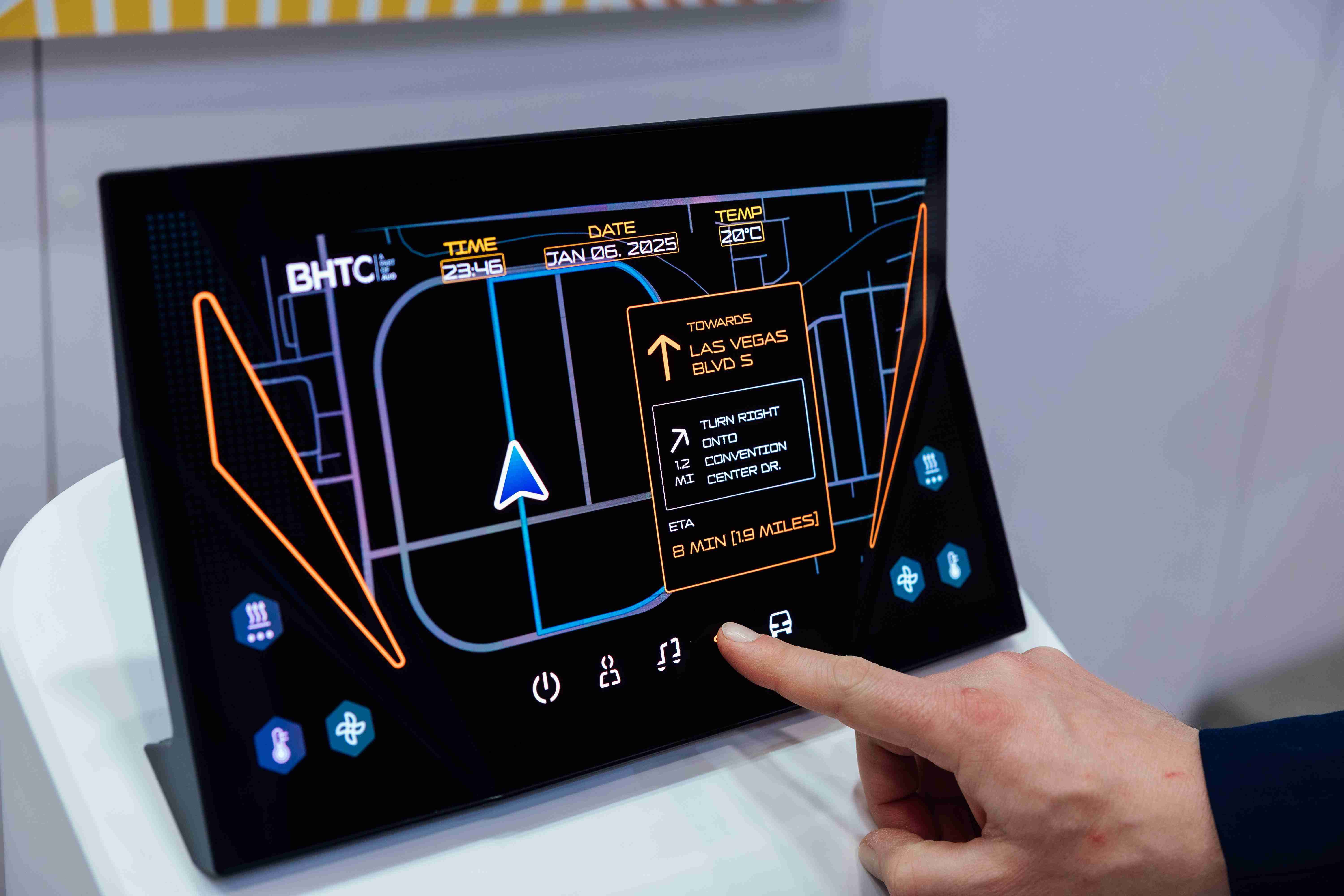 Micro LED可折迭触控显示器(Haptifold Display)结合BHTC多年HMI设计经验,,整合中控台和温度控制功能,,以优美的曲面和独特的外型助力车内设计美学,,在辅以触控回馈下,,为驾驶带来更直觉的使用体验。。。。